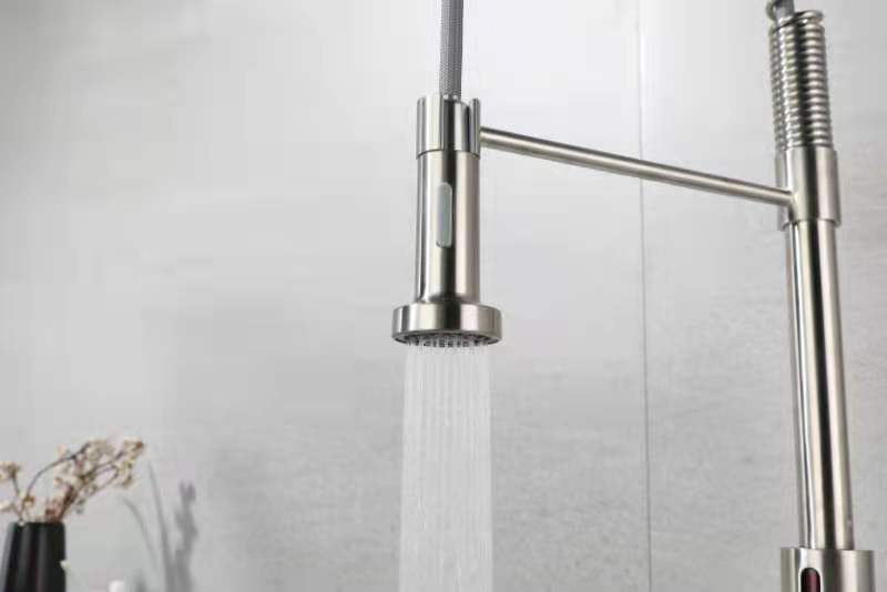 Pull out water saving spring kitchen faucet, solid brass construction, corrosion resistant, high pressure water saving, good performance. Practical and convenient.Water can be sensed, can be pulled and pulled for convenience, dual-mode water.
