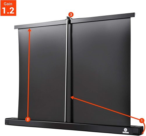 * This table screen is ideal for use with Pico or mini projectors. Simply place the projector, set up the screen and get started!