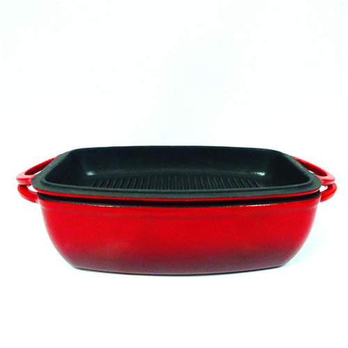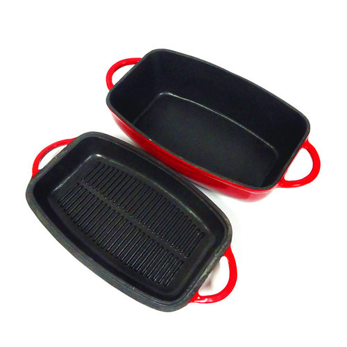 Wonderfully versatile, this Rectangular Enamel Cast Iron Bakeware with Grill Pan Coverted to the oven and all cooktops, including