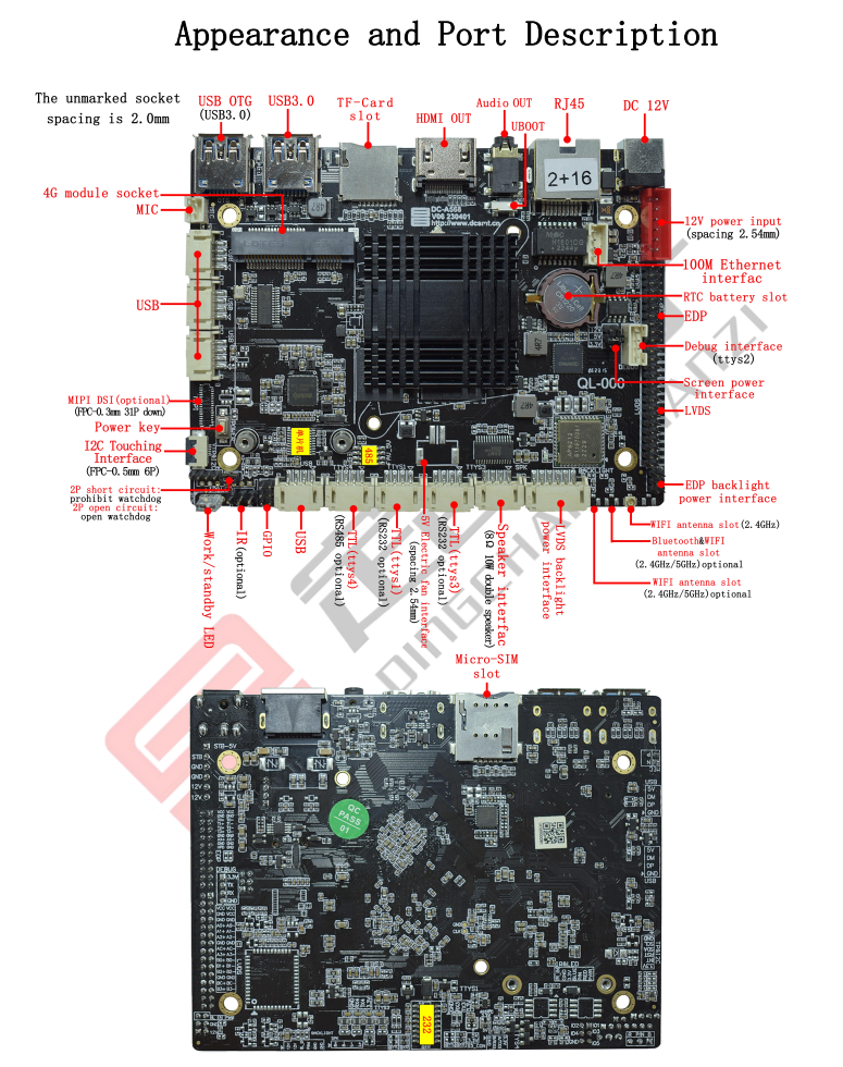 Power socket | 1* DC 12V Input (DC-5.5*2.5MM ), 1*6P Input (2.54mm-6P) | |||||||