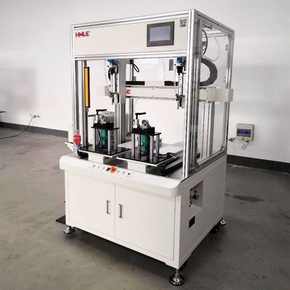 The 6-axis automatic locking screw machine adopts two independent systems for independent operation, equipped with two sets of automatic screw feeder, two sets of locking systems and control systems. The dual systems can complete the respective locking procedures independently, or cooperate to complete the screw locks of different parts.