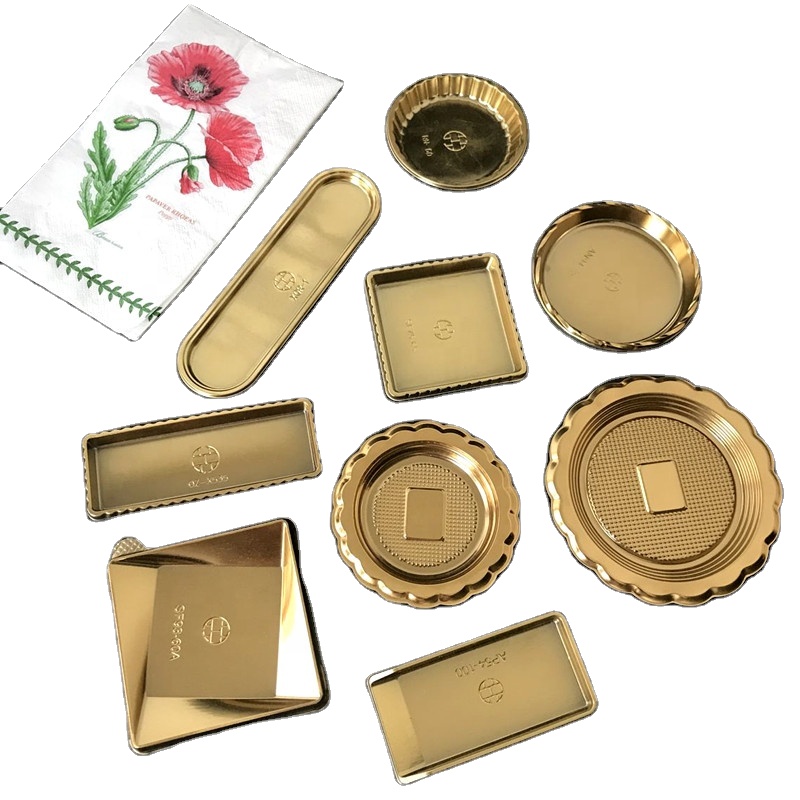 Round Rectangular Square Mini Large Gold Plastic Cake Trays for Bakery1