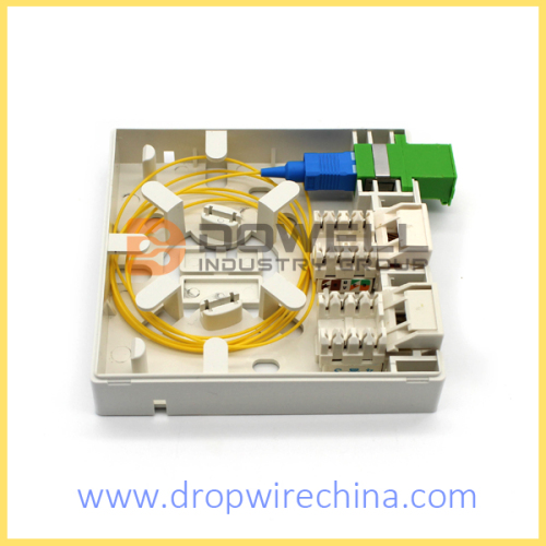 Engineered fiber routing protect bend radius through the unit to ensure signal integrity.Hybrid socket for SC/APC adaptor, RJ45 and drop wire cables.Wall-mounted and suitable for fiber optic cable.