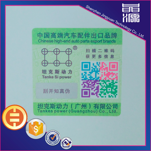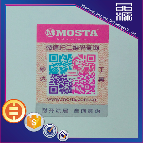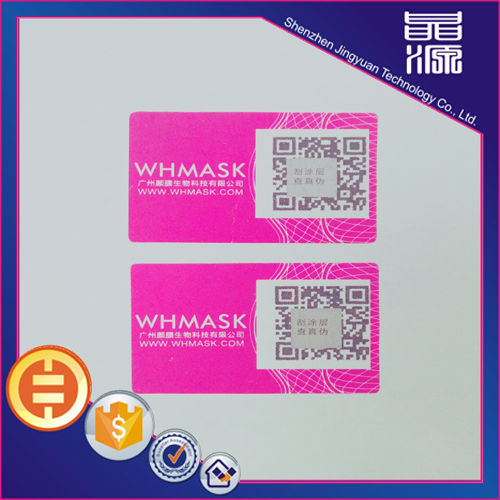 Scratch off QR code security labels, this security label is printed on the label paper security digital, and then spray a layer of special ink made of digital ink. This anti-counterfeit labels can be used by scraping the covered ink, check the anti-counterfeit digital to achieve the purpose of anti-counterfeiting products.