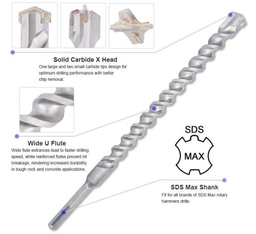 Product name:Carbide X Head Tip U Flute SDS Max Rock Drill Bits