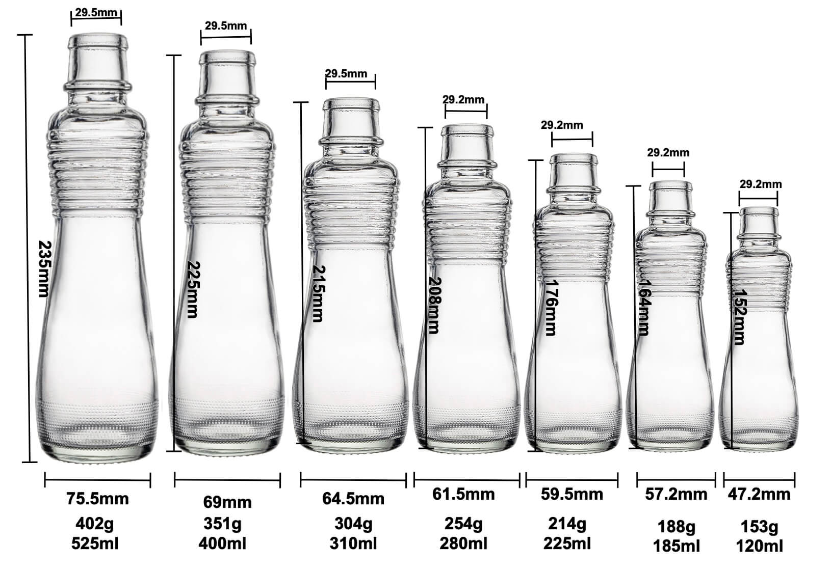 volume: 525ml, 400ml, 310ml, 280ml, 225ml, 185ml, 120ml