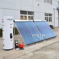 ? System Description? ? ? Vision VS series split pressurized solar water heater incorporates a heat pipe solar collector,?pressurized water tank,?pump station?and accessories. It is specially designed for villa buildings. The solar collector may be installed either on house roof or wall while water tank may be placed anywhere inside villa. ? Working Principle ?? ?? The collector absorbs solar energy and the heat is transferred to water tank through pump circulation, When the temperature difference between collector and tank reaches the set value, the controller starts the circulation pump automatically for heat exchange; An internal coil is pre-installed in storage tank as heat exchanger, a heat-transfer liquid circulates through solar collector to tank coil for heat exchange between the closed loop and main tank water, and an additional tank coil could be used to form a closed circulation loop for house or floor or pool heating. There are many different configurations possible; the choice of design will depend on the purpose of the system, climate, space limitations and many other factors. ? Specifications ?? ? ? ? ? ??? ? ? ?? ? ? ?? Simple DIY Multi-function Swimming Pool Solar Water Heater System | ? ? ? ? Heat?Pipe ???? Solar?Collector | ? ?Heat Pipe | ??TU1 red copper pipe 14/ 24MM condenser | ||||