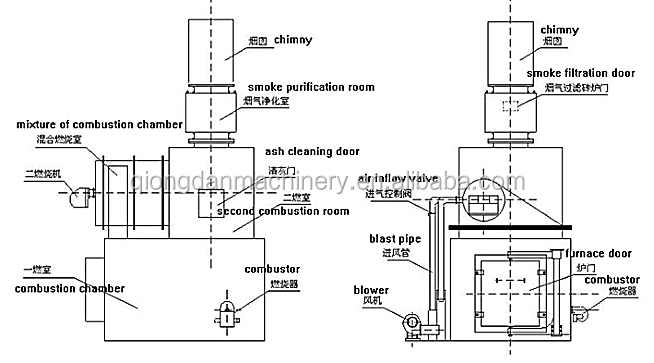 1. The combustion room adopts refractory insulation material, which can effectively increase the temperature of the furnace, accelerate the ignition of the treatment object, and promote the burning of the smoke.
