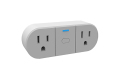 SK521-W is a single control dual output WIFI smart socket, the body comes with button control, can also be controlled by mobile phone software, with remote control function, countdown function, timer function, light sense function, can cooperate with third-party voice assistant ECHO, Google Home for voice control.