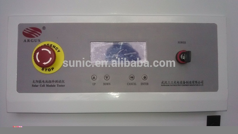 Solar Panel Flash Tester?has unique apparatus of modifying,to input the compensate parameter,it will carries on automatically/manual temperature compensation and compensate with the light intensity,and automatically measures and modifies the temperature. Based on the Windows operation surface,and humanized-design testing software,it records and displays test curve(I-V curve,P curve) and the test parameter(Voc, Isc,Pm,Im,FF,EFF), the test of sequence number is automatically produced and preserved to the assigned folder.