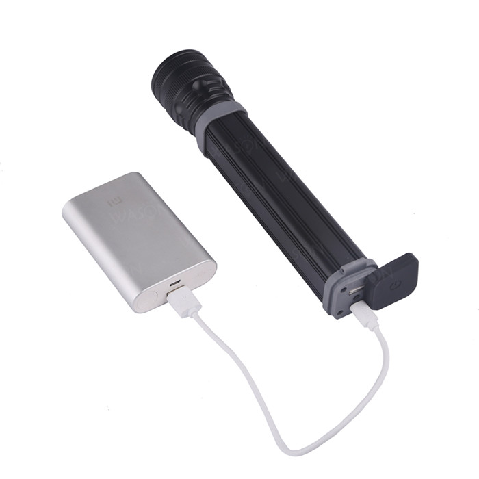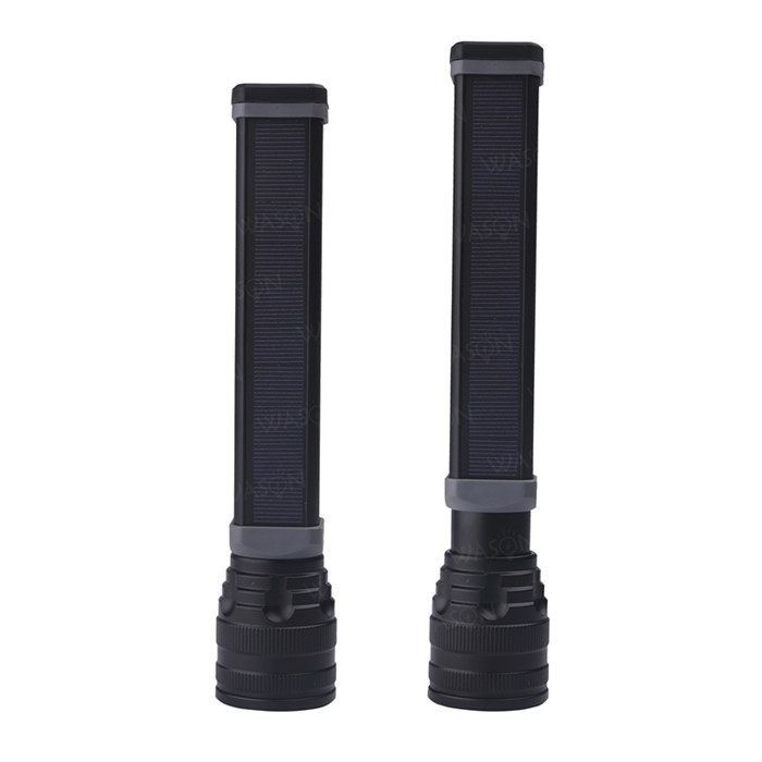 New Version Brightest Zooming Long Square Shape Emergency Solar Energy 3.7v Rechargeable Led Flashlight Torch With Usb Charger