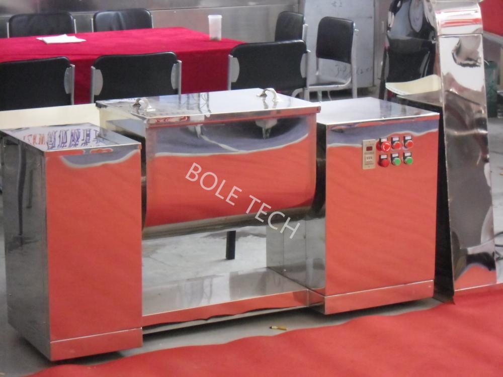 Trough mixer is used for mixing the powdery or pastel supplies, making the material of different qualities, its characteristic is that the type of mix is horizontal groove-type thick liquid, mix thick liquid as coherent axle, easy to wash. The parts contacting with the material are all made of stainless steel.
