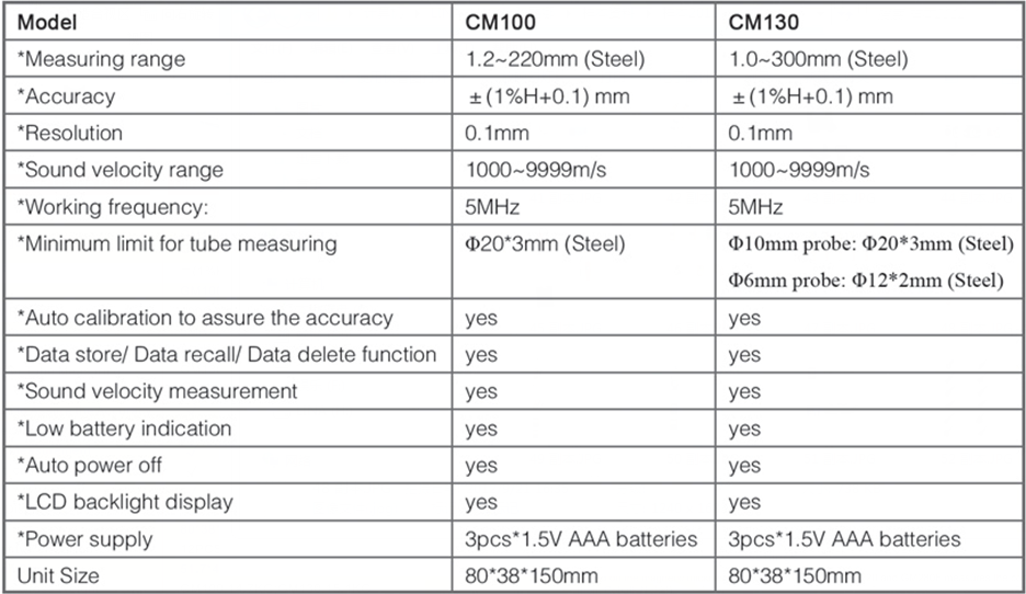 ?This unit is suitable for measuring materials that are good ultrasonic conductor such as metal, plastic, ceramic, glass etc., as long as the measured part in two parallel surfaces for measurement of thickness. This unit is not suitable for cast iron due to its big crystalloid compostition.