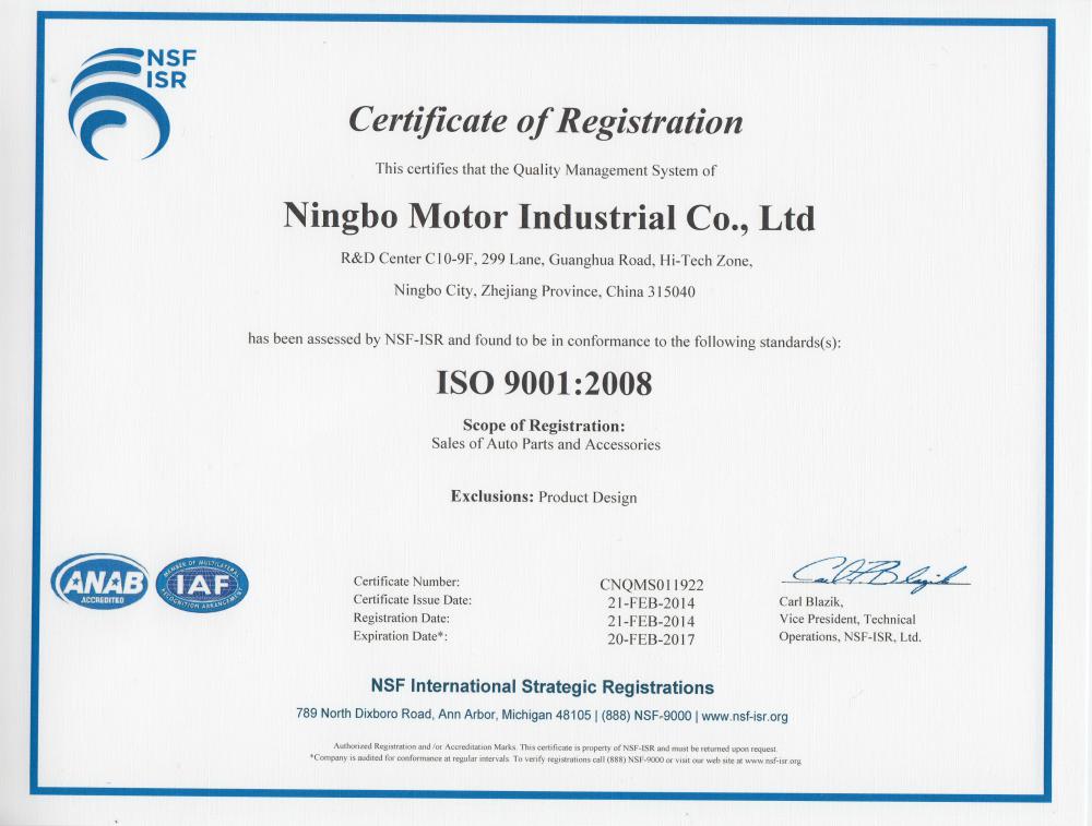 NINGBO MOTOR INDUSTRIAL CO., LTD., established in 1999, located in the 2nd biggest port city