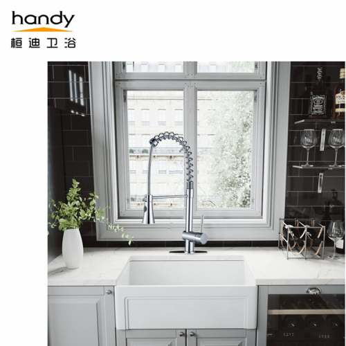 Speaking of the Pull out Kitchen Sink Mixer Faucet,I only think of the “Handy”.The self-developed reflex control can quickly and automatically return to its original position accurately, generally it can be pulled 40-60 cm, it has High-arch gooseneck spout design with 360° swivel spout, provides greater access to more areas of the sink.Spring-flexible Mixer tap,main body constructed of solid brass providing long-lasting durability.Finishes will resist corrosion and tarnishing through everyday use.