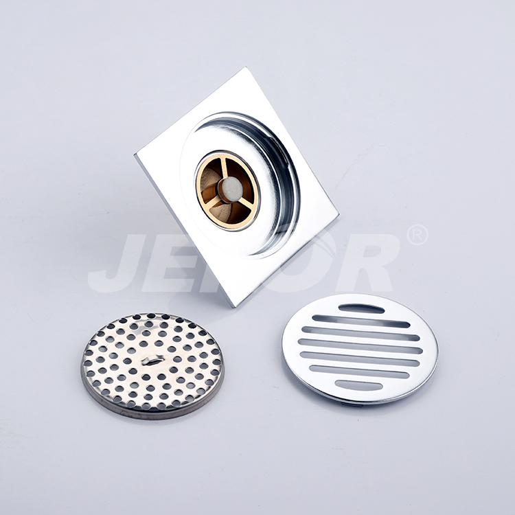 It features a square top grill made of Brass for excellent durability, while square holes allow water to easily pass through and into the drain.