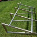 The stability of a large-scale solar array depends entirely on the geometric optimization of its underlying extrusions. Foshan LianHong Aluminum Industry Co., Ltd. manufactures heavy-duty structural profiles specifically designed for utility-scale and commercial ground-mount PV installations. Through rigorous metallurgical control, the wall thicknesses and cross-sectional geometries of each solar panel mounting frame are extruded to exact tolerances. As demonstrated by the triangulated support braces and rigid base rails, this structural architecture ensures maximum load transfer to the concrete ballasts or ground footings, completely eliminating the risk of system deflection or structural buckling under extreme weather conditions.