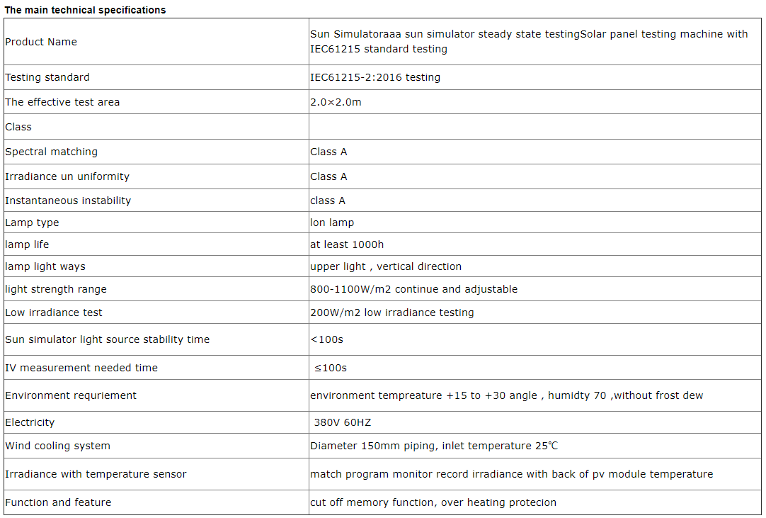 Solar panel testing machine with IEC61215/IEC 61646 standard testing