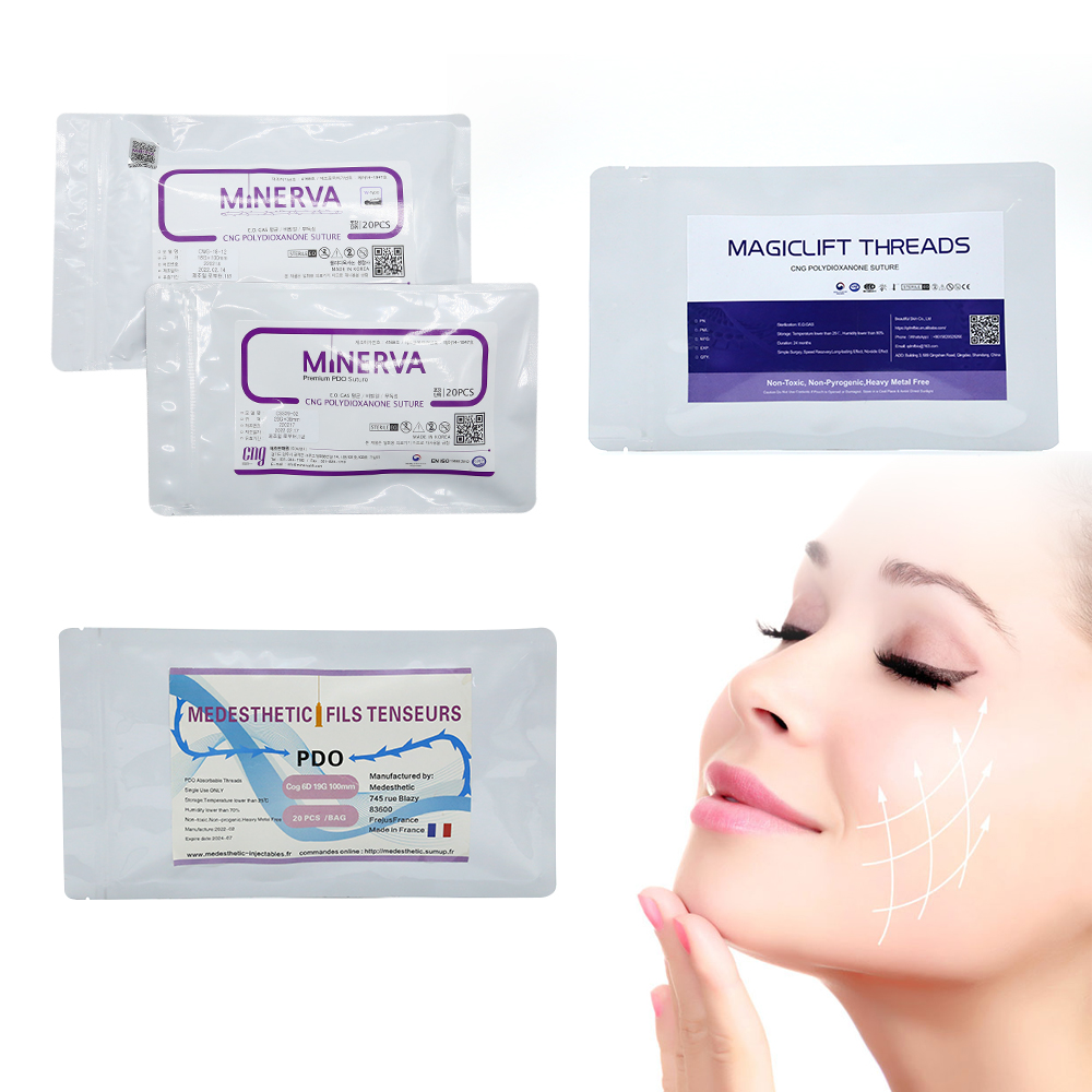 PDO Thread Lift is the latest and revolutionary treatment for skin tightening and lifting as well as V-shaping the face. These threads are made of absorbable collagen line PDO (polydioxanone) material which is similar to the threads used in surgical stitches, implanted in specific parts of the skin, stimulate collagen regeneration, promote blood circulation, so as to lift and tighten the drooping skin, achieve natural wrinkle elimination, facial enhancement effect. The threads will be reabsorbed in 4-6 months leaving nothing behind but the skin structure created which continues to hold for another 15-24 months.