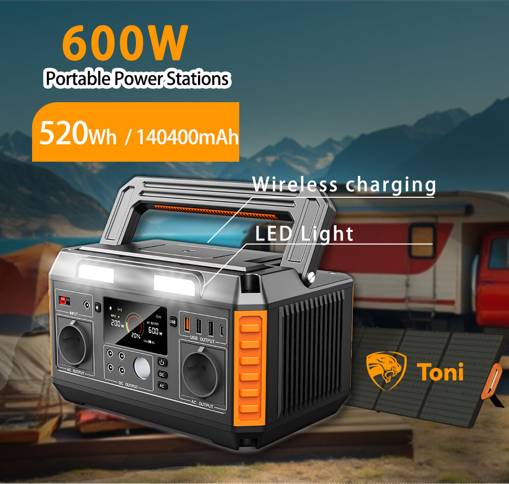 Toni 600W 24V 5A Solar Power Bank A6 520Wh Portable Generator1