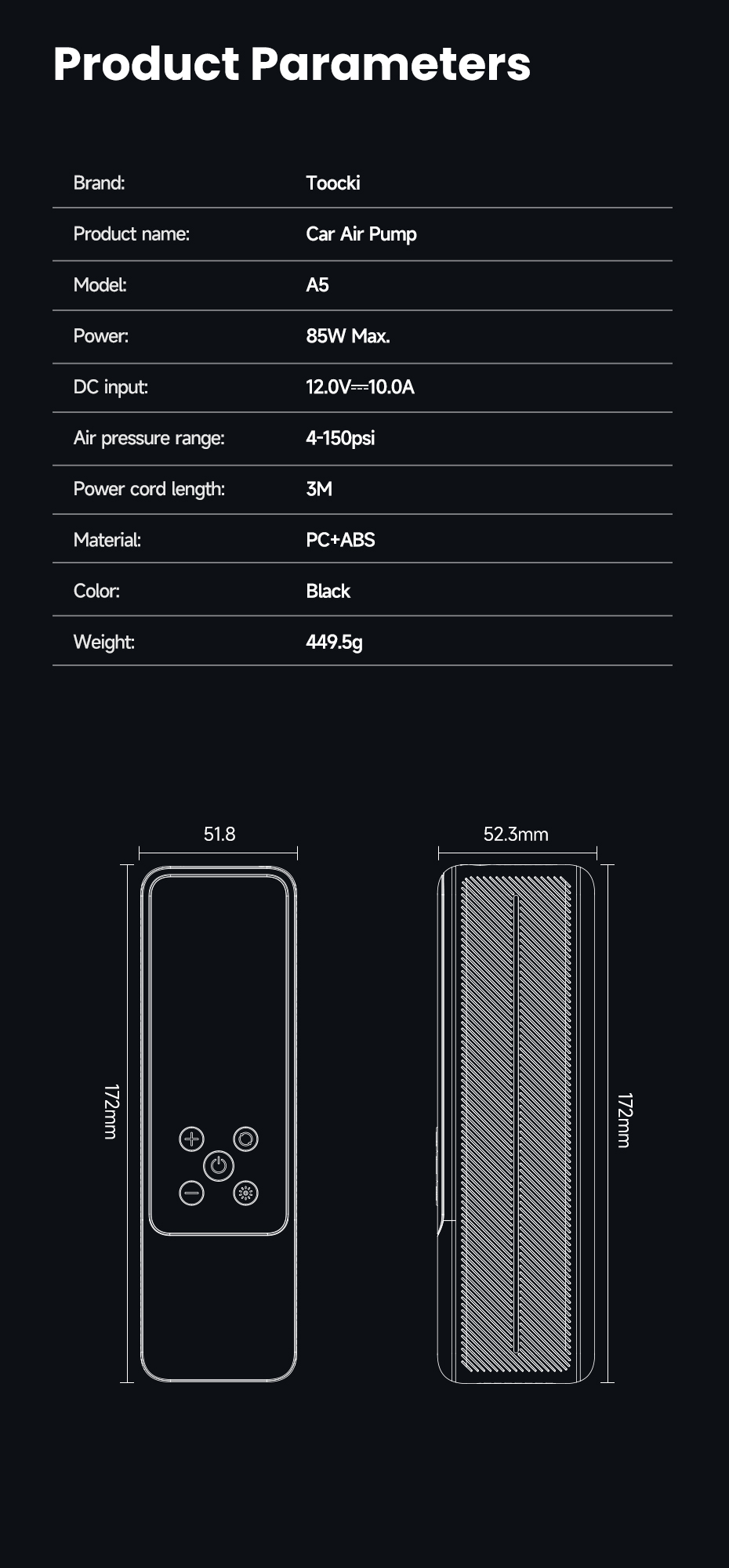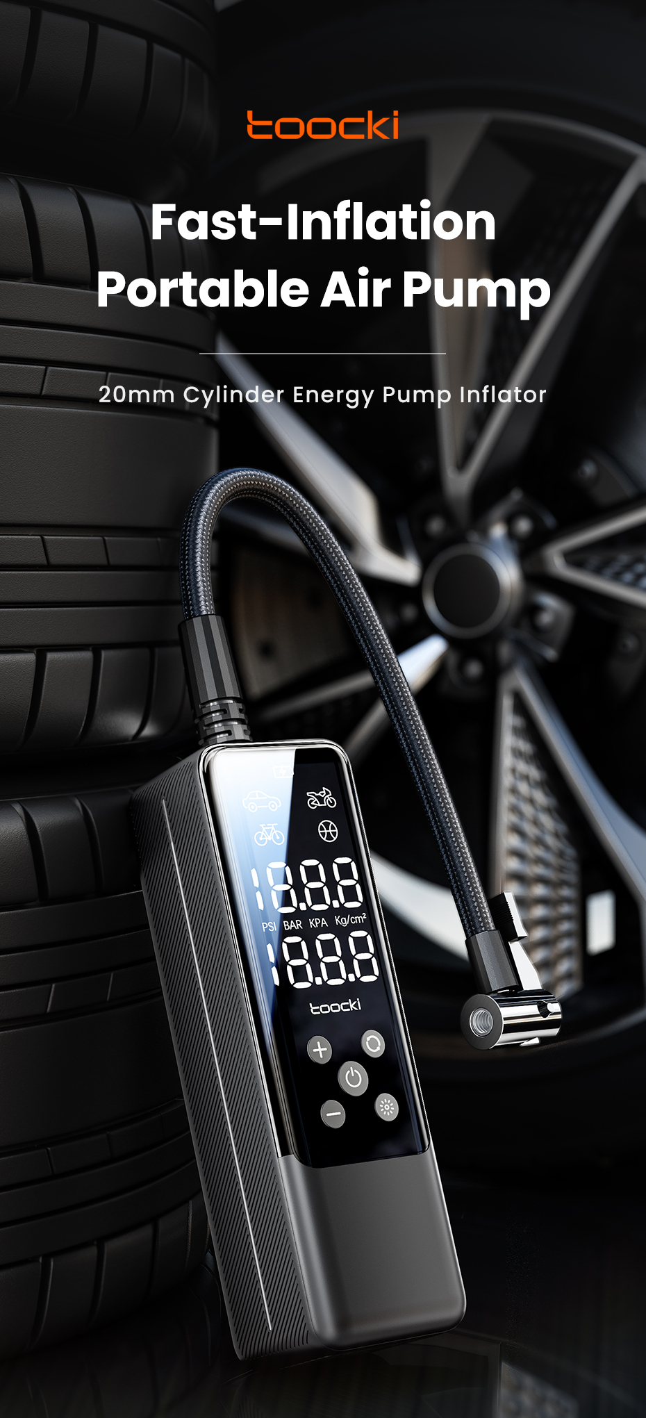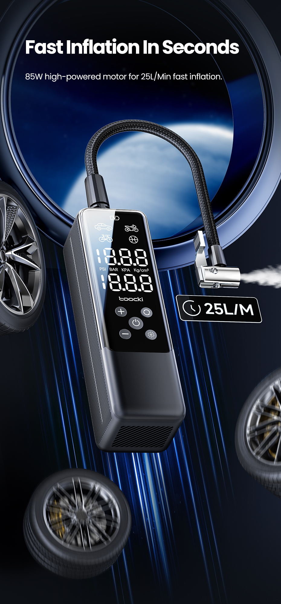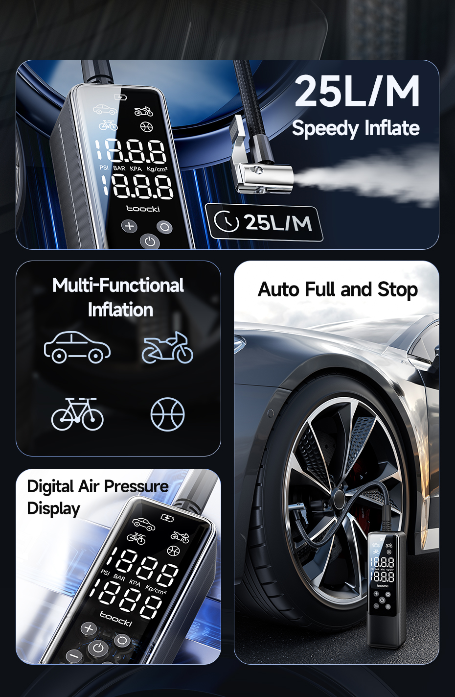 Toocki 150psi Electric Pump for Car Tires and Balls1