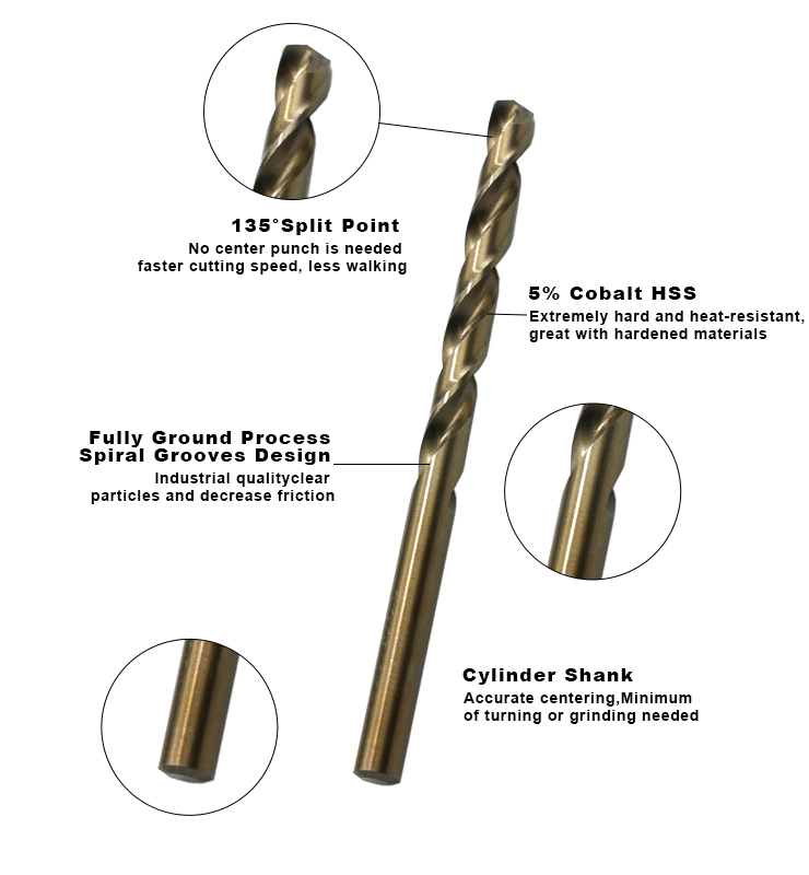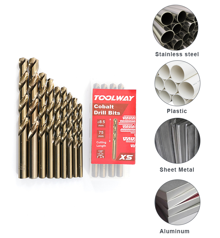 20414.095 | Cobalt Drill Bits (5pcs in a plastic tube)9.5mm | 200 | HSS -M35(5% cobalt) |