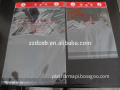 Feature | 1)??Plastic bag with header 2)??3-side heat seal 3)? Self adhesive with white pearl film 4)? The flap can be single-folded or double-folded(at the bottom) 5)? various shapes at customers' choice with existing plate |