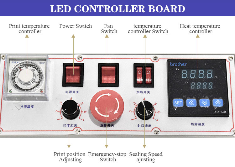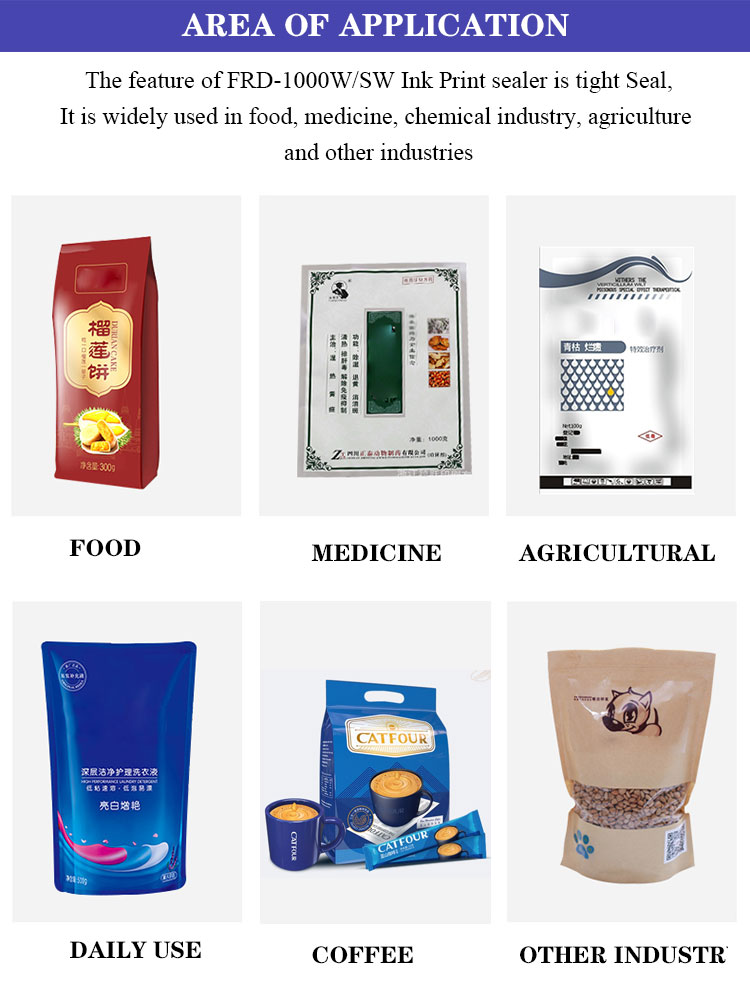 ◆FRD series multi-functional film sealer(with solid inker printer)can be print the desired date date simult-aneously with sealing