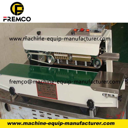 FRD-1000 Solid-ink coding band sealer is a new model of automatic plastic film sealing machine, which integrates color printing, sealing, continuous transmission of products, with clean and bright pattern on the sealing part, color selectable, instant printing and instant dry, and convenient to change the characters.