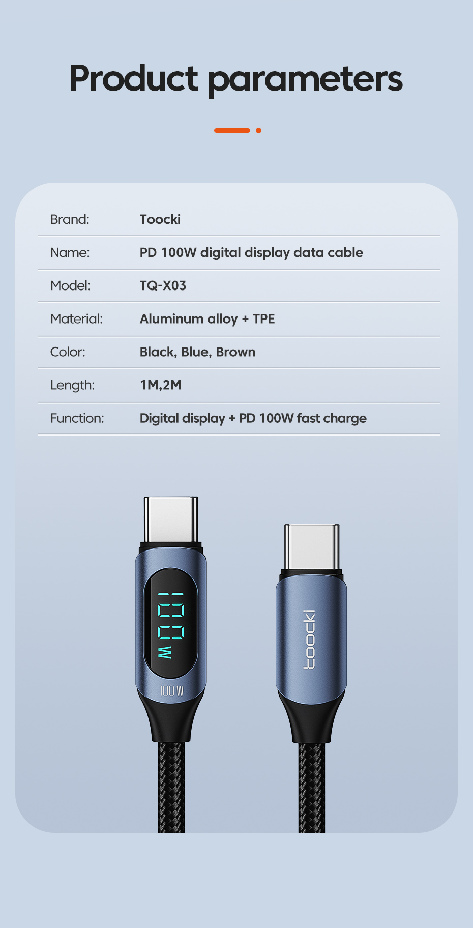 Visible Real-Time Power Display Toocki PD 100W 5A Type C to Type C Fast Charging Cables1