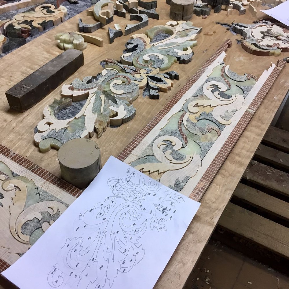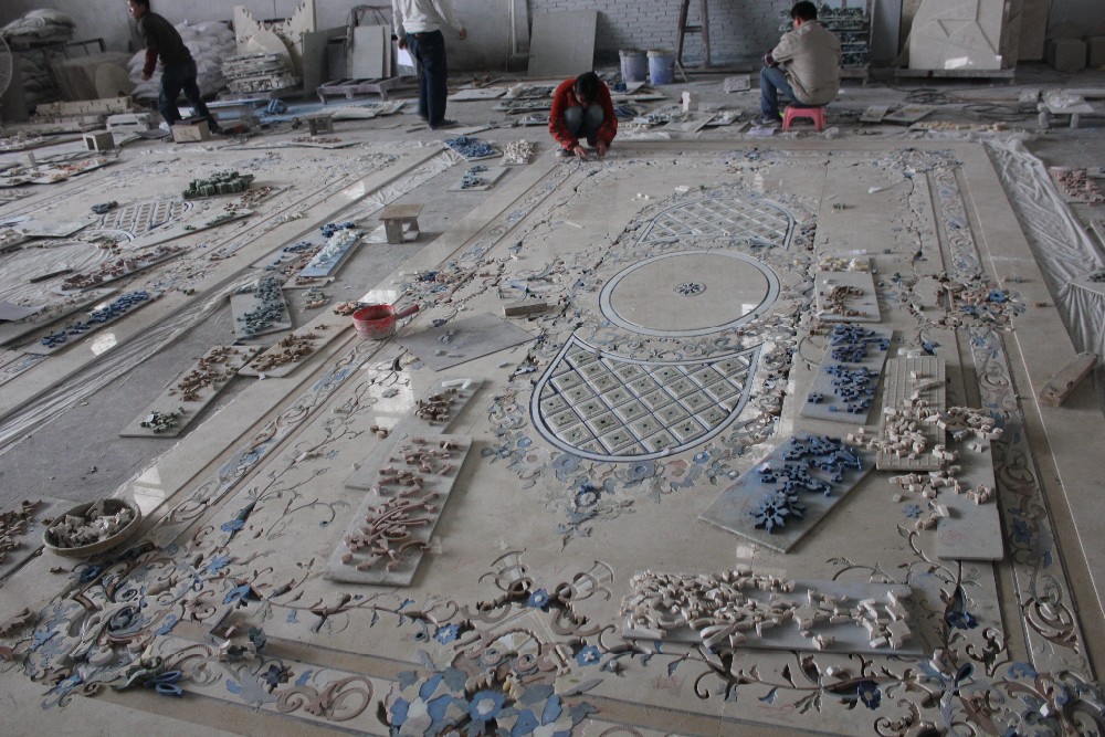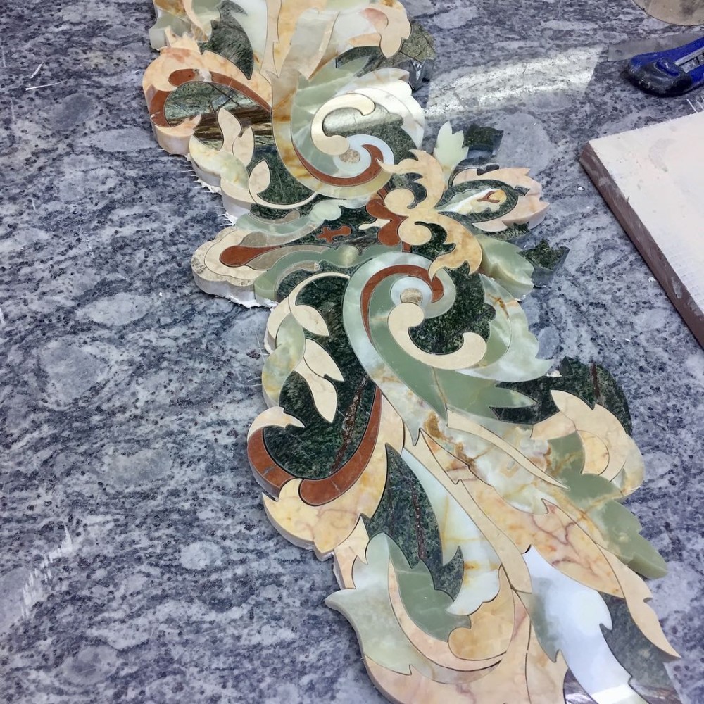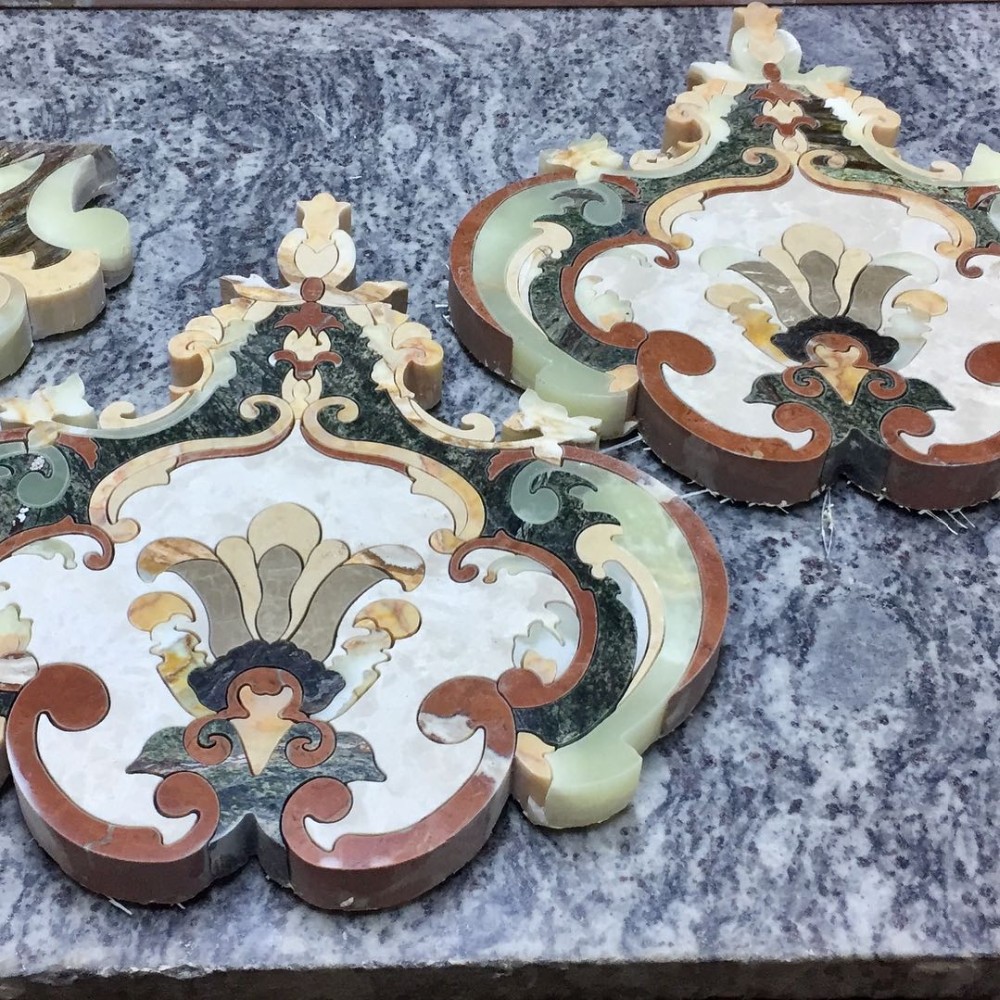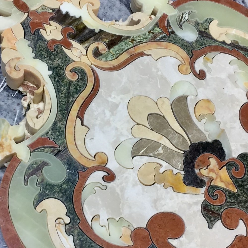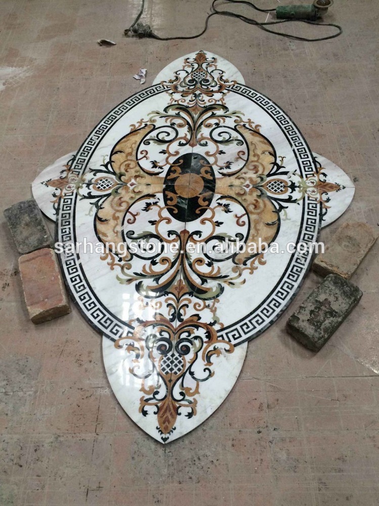 Product Description Sarhang stone is the World Leader designer and producer of Custom made Large Natural stone (Marbles) tile Floor Medallions, floor tile borders, custom floor inlays, and Porcelain floor tile medallions (often referred to as Mosaic medallions) with focus on durable high end residential applications. We offer Polished or Honed Marble wall or flooring medallions in a variety of sizes, styles and options, made with natural stone, travertine, marble, granite, exotics, Glass, Metals and porcelain tile. Any design may be Fabricated, Round, Square, Oval, Rectangular, Radiused, no problem in any size Big or Small. Your completed projct will become a statement of opulence your quests will admire. We have many wall and floor tile border inlay styles.
