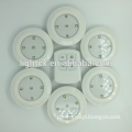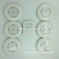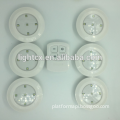 This LED Puck Light is pocket and novelty design with wireless remote control , light works on 3XAAA battery and the remote control works on 2XAAA battery, It is easy installtion, attach to anywhere you want it to put ,for example bedroom,kitchen,bathroom,storage room,stairway,taproom,hallway,closet,tent by double adhesive sticker we offered. Turn on/ off by pressing the center of lamp or wireless control remote?