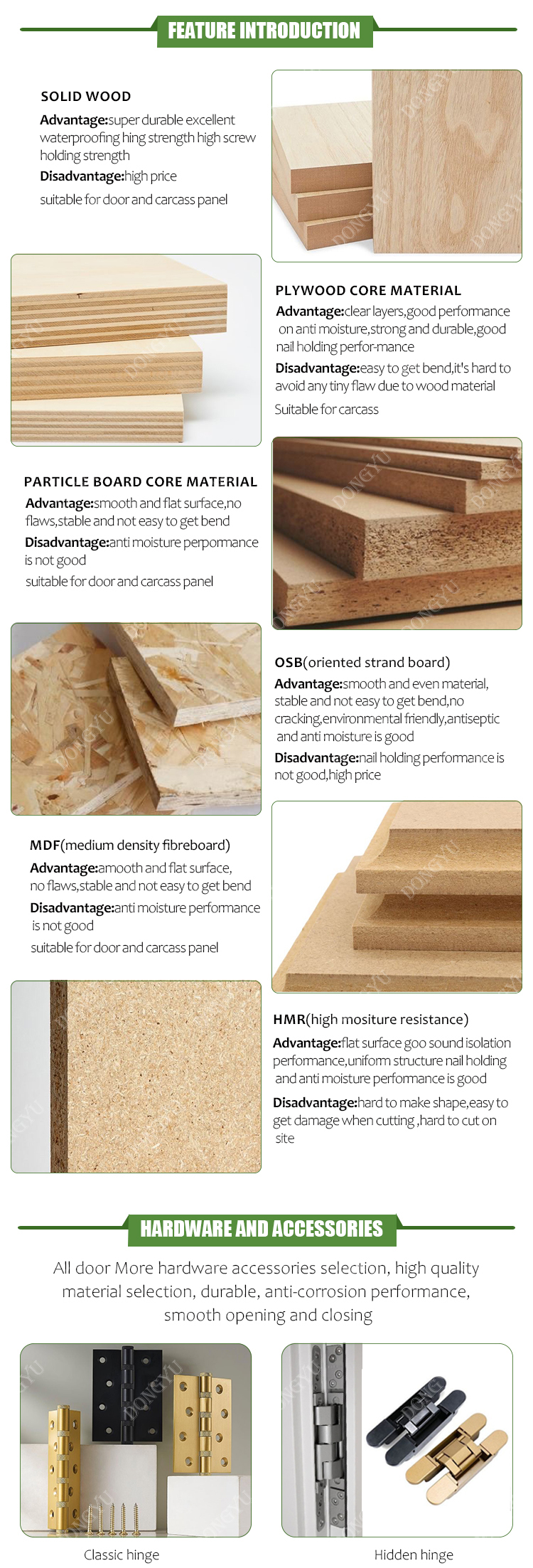 Material | MDF HDF Plywood Solid Wood | ||||||