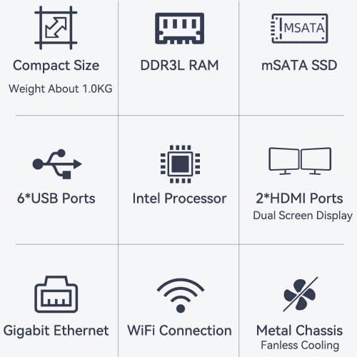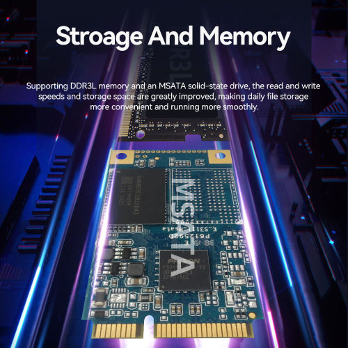 This mini PC is equipped with a single-channel SODIMM slot that supports DDR3L 8GB RAM and supports the simultaneous and stable running of multiple programs. Built-in 1 full height mSATA SSD, data read and write speed is fast, so that the system startup, software loading is completed in an instant.