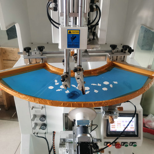 Designed for fine printing with taper products, Ordinary circular screen printer printing arc pattern will elongate and deform the pattern, Or product seragged, The printed pattern is large and small, The YICAI120C adopts the imitation printing mode, Syntaneous printing according to product arc, Can can avoid the deformation of the pattern, Improve the product printing quality; Relative to normal taper wire printing, Only for a single product, The YICAI120C is controlled by a dual servo motor, A servo motor controls the product rotation angle and speed, A servo motor controls net rotation speed and angle, The two servo motors proceed synchronously, Greater applicability, More versatility;